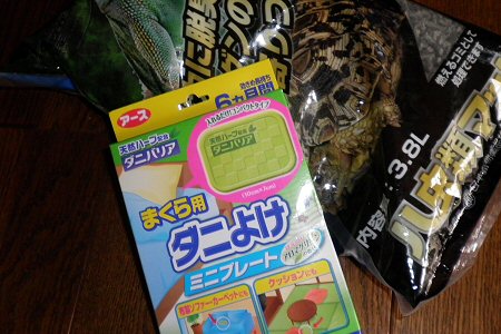 予定通りダニを寄せ付け無い的な事をうたってる爬虫類用の床に敷くやつとダニ除けシートを買うて来た。