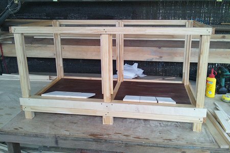全体的にやすりをかけ、一応防水加工をして、時間と素材が余ったのでシェルターを2つ作成。