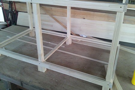 1ヶ月前からの計画通り、田舎の父親の作業場?でケージつくりを開始。