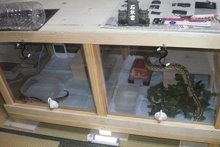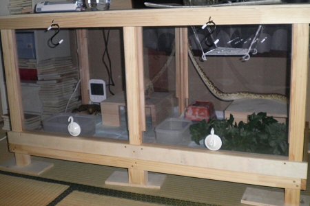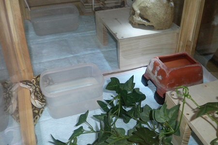 いよいよ自作ケージにボールパイソン達を移す。