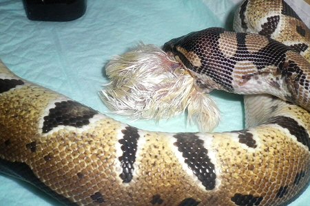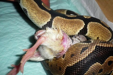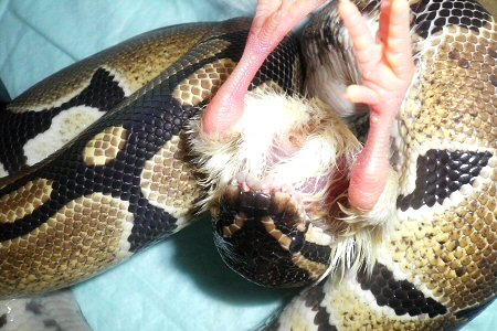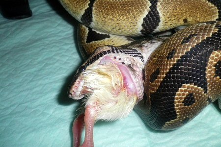 デビル、ヒヨコにかぶりつく