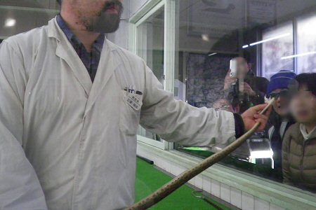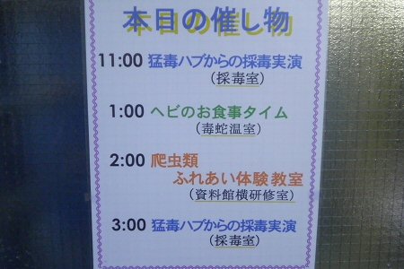 ヘビの餌ヤリから始まり、爬虫類教室、ハブの採毒まで。