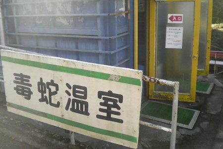 餌ヤリイベント会場の毒蛇温室。
