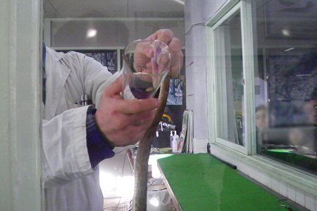 プラケに入ったニホンマムシが席にまわってきたので接写した。