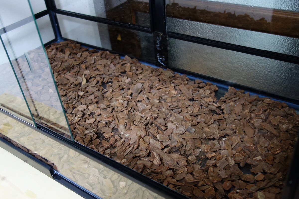脱皮前で、水浴している間にケージを掃除。